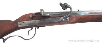 The earliest rifles with flintlock mechanism appeared nearly 1750 in Europe with new units that used them known by the vernacular name as 'Jagers' meaning 'Riflemen'. The flintlock mechanism was made by Swede Sven Aderman. The flintlock mechanism used a piece of flint held in the hammer which would strike a steel plate above the flash pan when the hammer was pulled igniting the powder in the flash pan which would then ignite the charge. Famous examples of the flintlock musket include the British Brown Bess (the longest serving firearm in history) and the Charleville Musket (which would form the basis of other designs for well over a century)  |